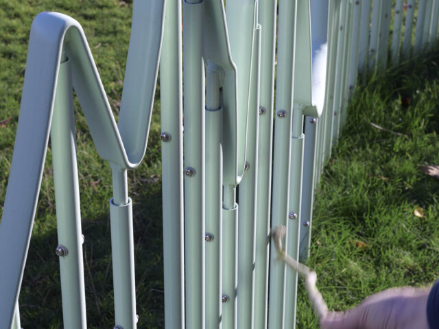 Emma’s permanent work for the site, ‘N+1’ is a sculpture in the form of railings. The spacing of the railing bars has been determined by sound recordings made from plants’ subterranean communication translated into a musical score. The piece can be played by running a stick along railings, making audible the sounds of plant communication.